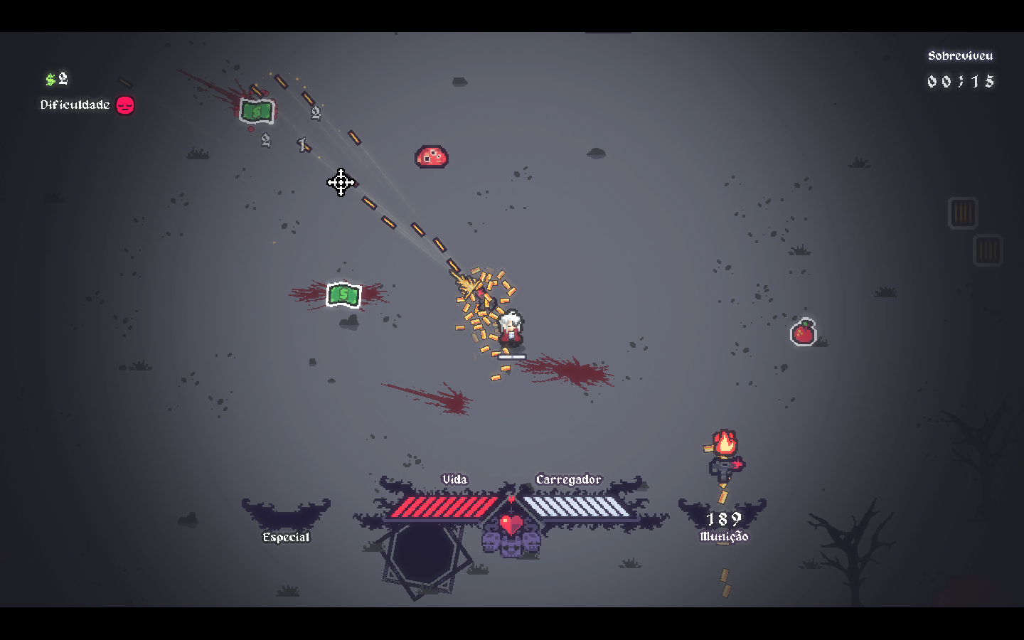 Armas variadas (9 no total, podendo ser adquiridas durante a partida).